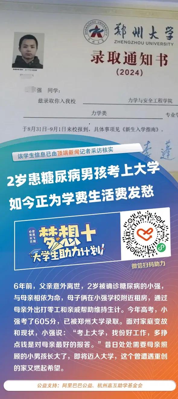 河南少年2歲確診糖尿病,12歲喪父,今年高考605分被鄭大錄取