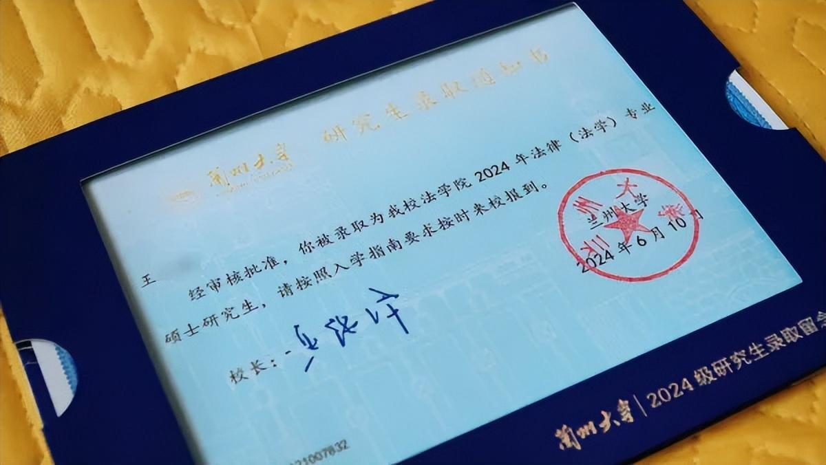 上個月,王紅拿到蘭州大學研究生錄取通知書。