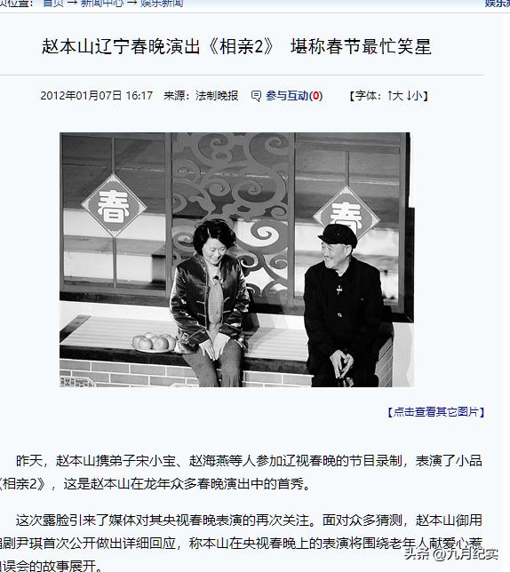 法制晚報2012-01-07報道:趙本山遼寧春晚演出《相親2》堪稱春節最忙笑星