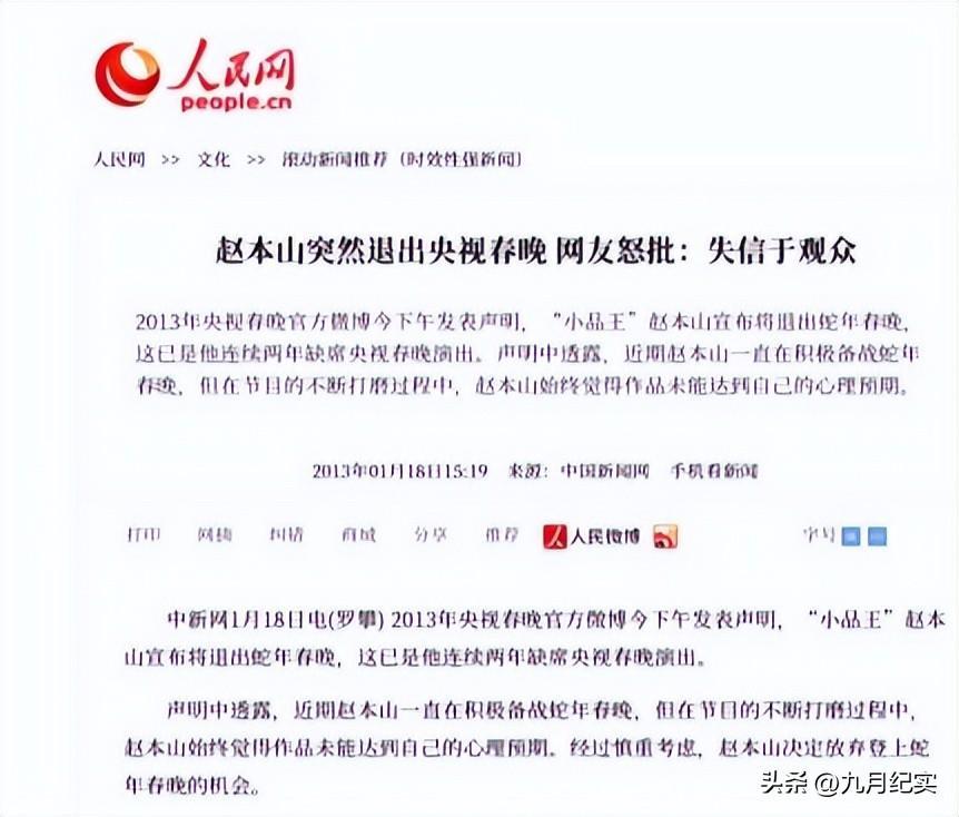 從2012年春晚後,趙本山就再也沒有出現在央視春晚的舞臺上,而他給出的理由是自己身體原因。