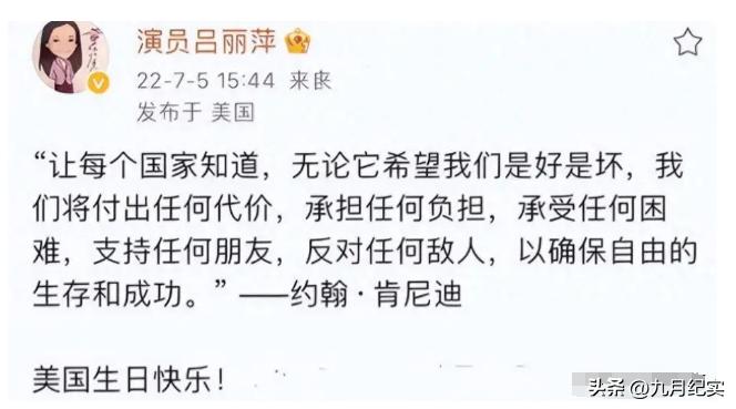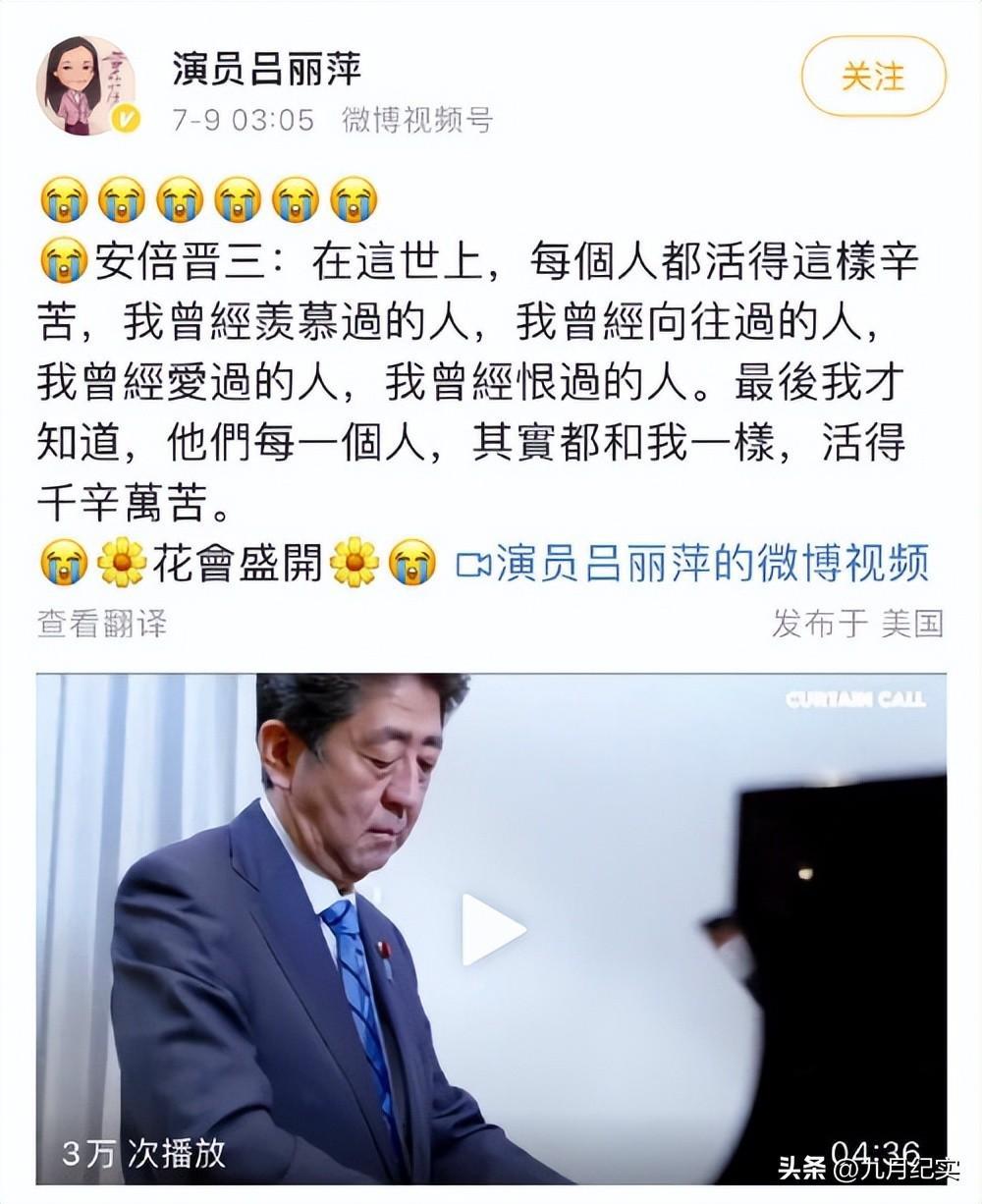在美國國慶日時,呂麗萍公開祝賀“美國生日快樂”,在安倍晉三去世時,她發文悼念,話裏話外全是不捨。