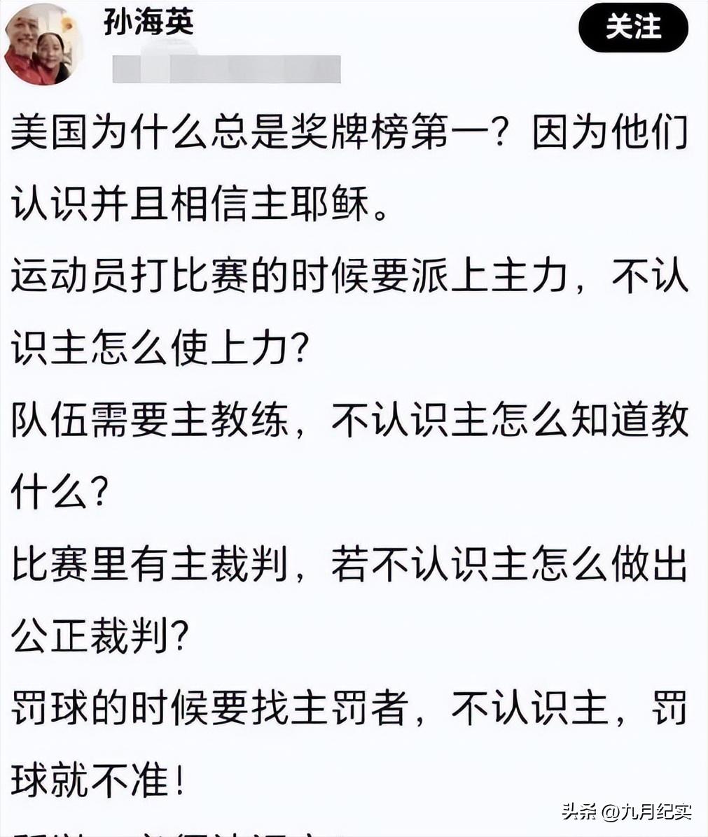 而在此次巴黎奧運會結束後,孫海英再次出來胡言亂語。