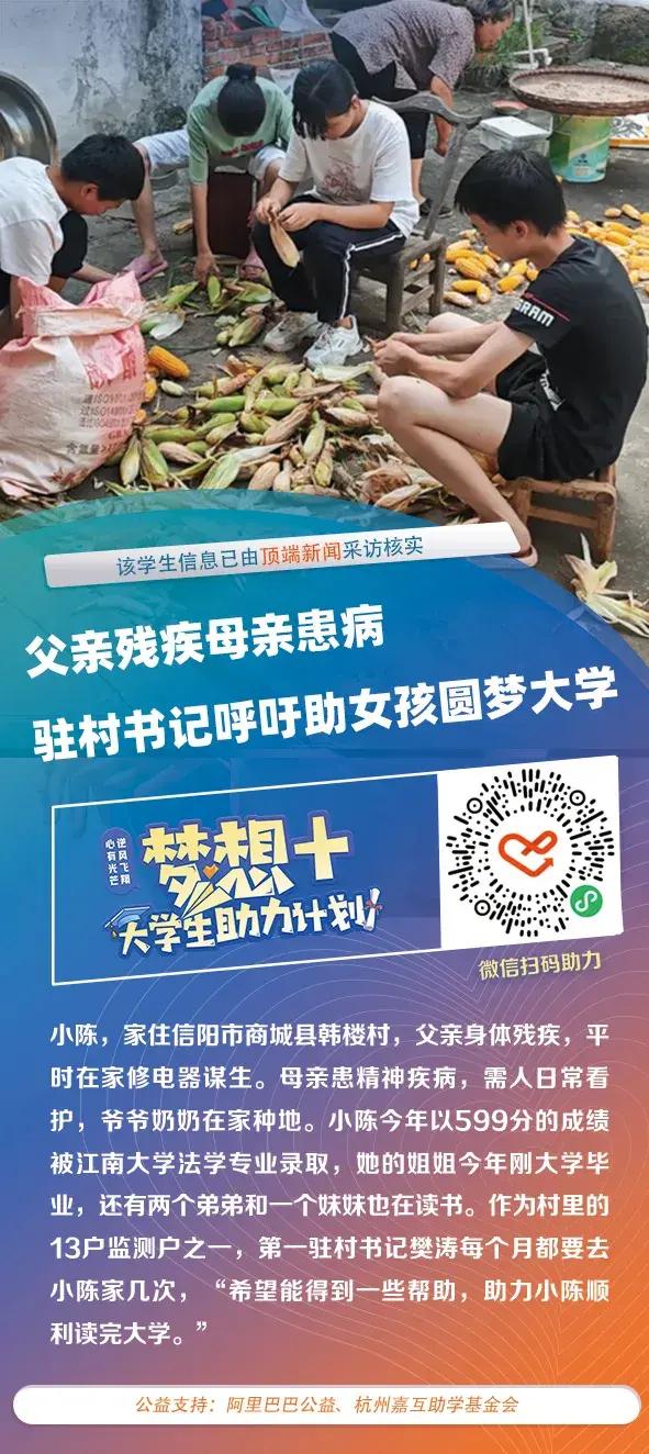 由阿里巴巴公益聯合全國近百家主流新聞媒體、杭州嘉互助學基金會共同打造,旨在喚醒和帶動社會愛心力量一起助力逆境大學生追夢,受助學生均由媒體記者走訪覈實,每筆善款清晰可見且100%給到學生,超出申請額度部分將用於資助更多同類學子。過去三年已有超349名勵志學子獲得助力。