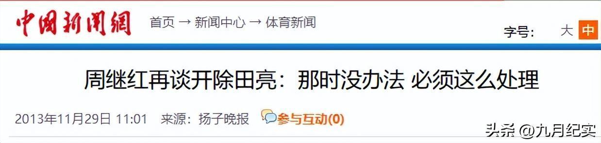 參考來源:中國新聞網2013-11-29周繼紅再談開除田亮:那時沒辦法 必須這麼處理
