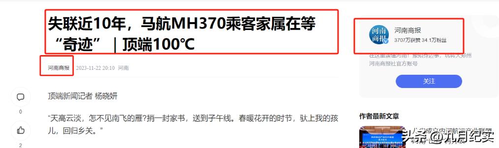 信息來源:2023.11.22,河南商報——失聯近10年,馬航MH370乘客家屬在等“奇蹟”|頂端100℃