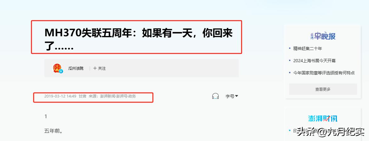 信息來源:2019.03.12,澎湃新聞——MH370失聯五週年:如果有一天,你回來了……