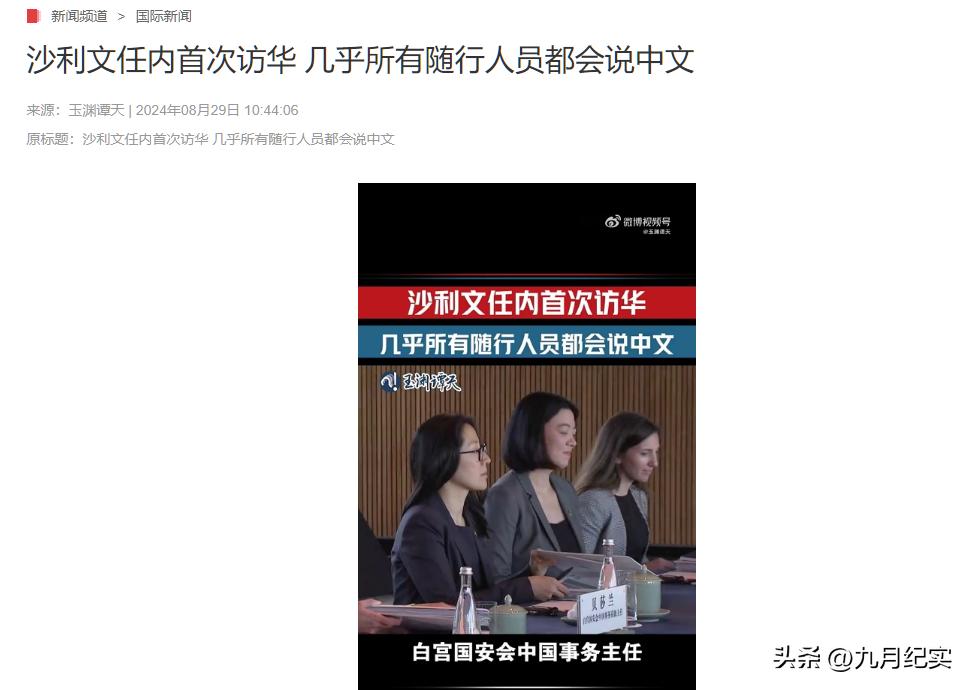 央視網2024-08-29報道:沙利文任內首次訪華 幾乎所有隨行人員都會說中文