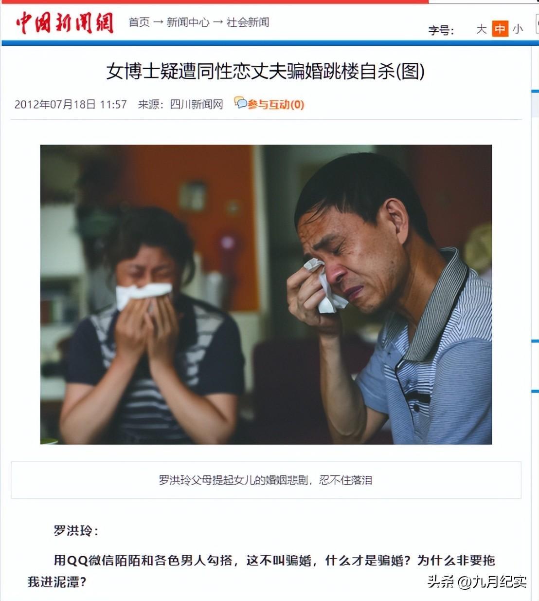 四川新聞 2012-07-18報道:女博士疑遭同性戀丈夫騙婚跳樓自殺