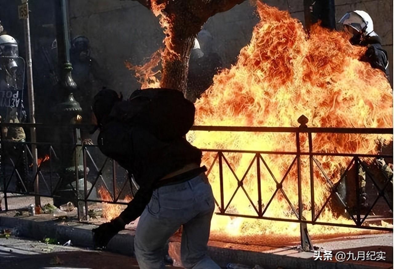 他再次趁着所有人不注意,直接將已經點燃的油罐砸向了大使館的大門。