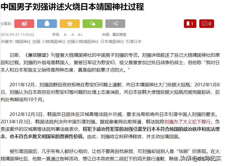 隨着這件事的熱議,很多人紛紛想起了2011年時期,劉強在日本火燒靖國神社的事情。
