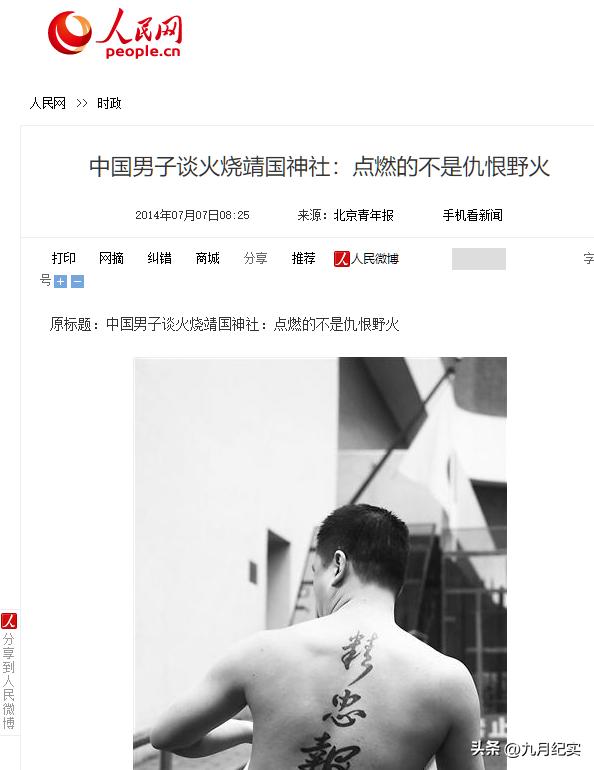 觀察者網2014-05-21報道:中國男子劉強講述火燒日本靖國神社過程