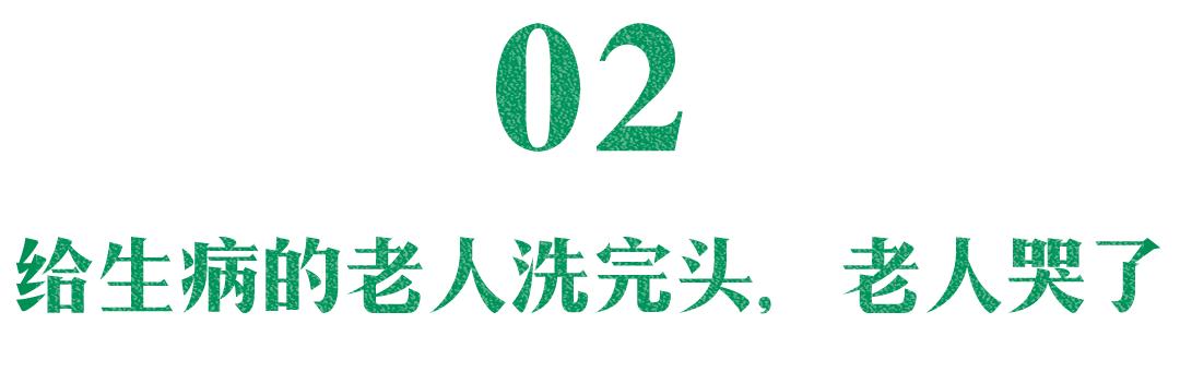 “記得有一次我給一位生病的奶奶洗頭,奶奶精神很差,我就倒來熱水,調試水溫。洗完頭後老人握着我的手哭了。說她都這麼大年紀了,第一次有人給他洗頭。”