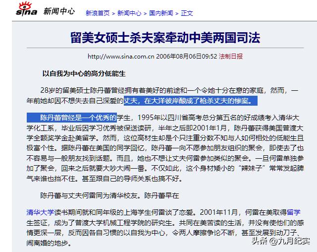 法制日報 2006-08-06報道:留美女碩士殺夫案牽動中美兩國司法