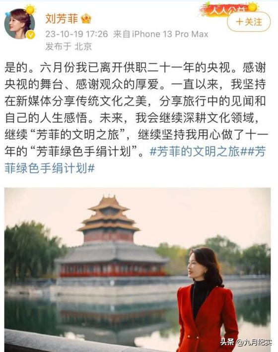 2023年10月,劉芳菲發文回應自己從央視離職一事,而那個時候大家才知道原來她已經離職4個月的時間。