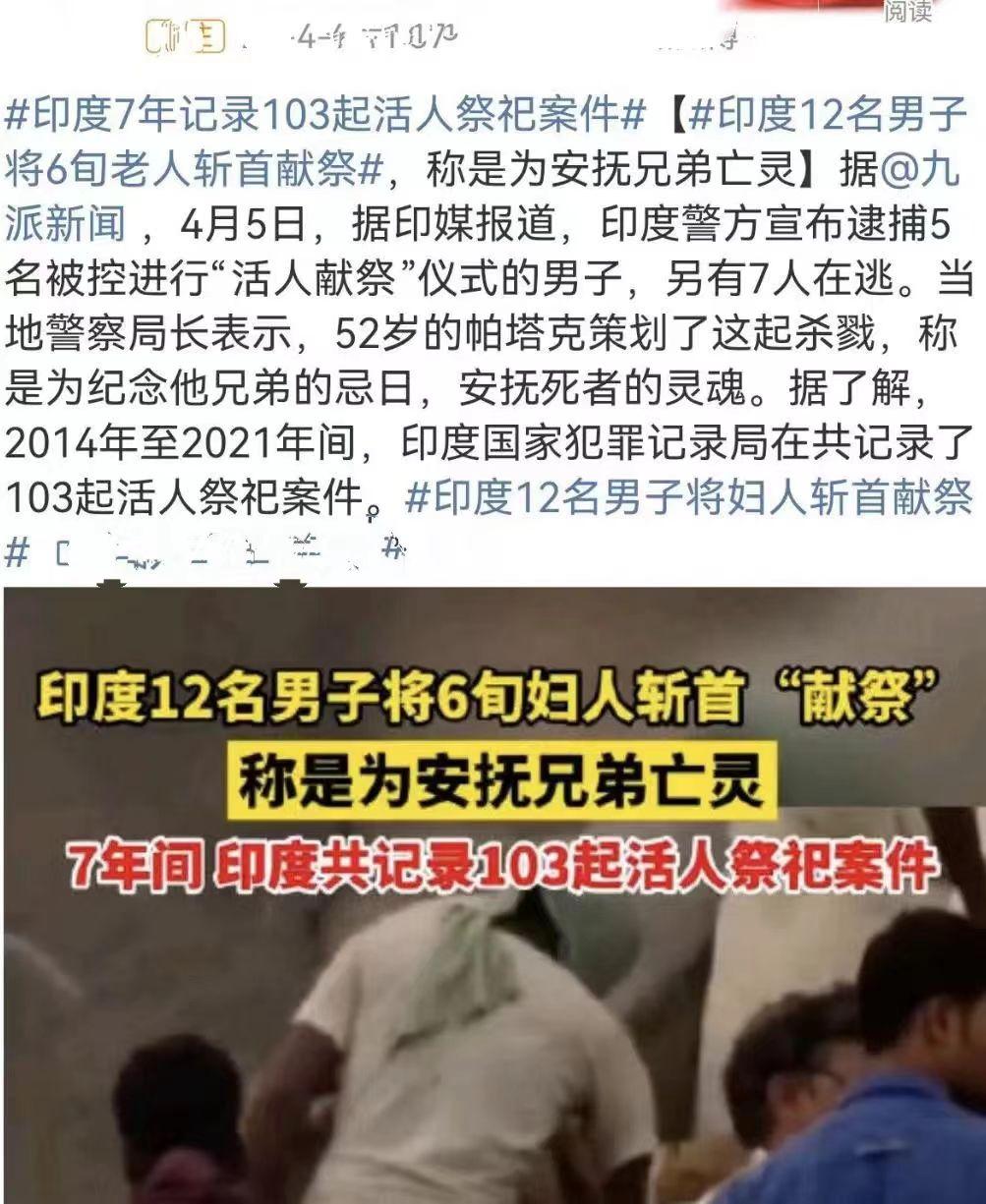 近日,印度在接二連三發生女性凌虐、兒童虐待等惡劣事件之後,又因活人獻祭事件,登上網絡熱搜,再次毀人三觀。