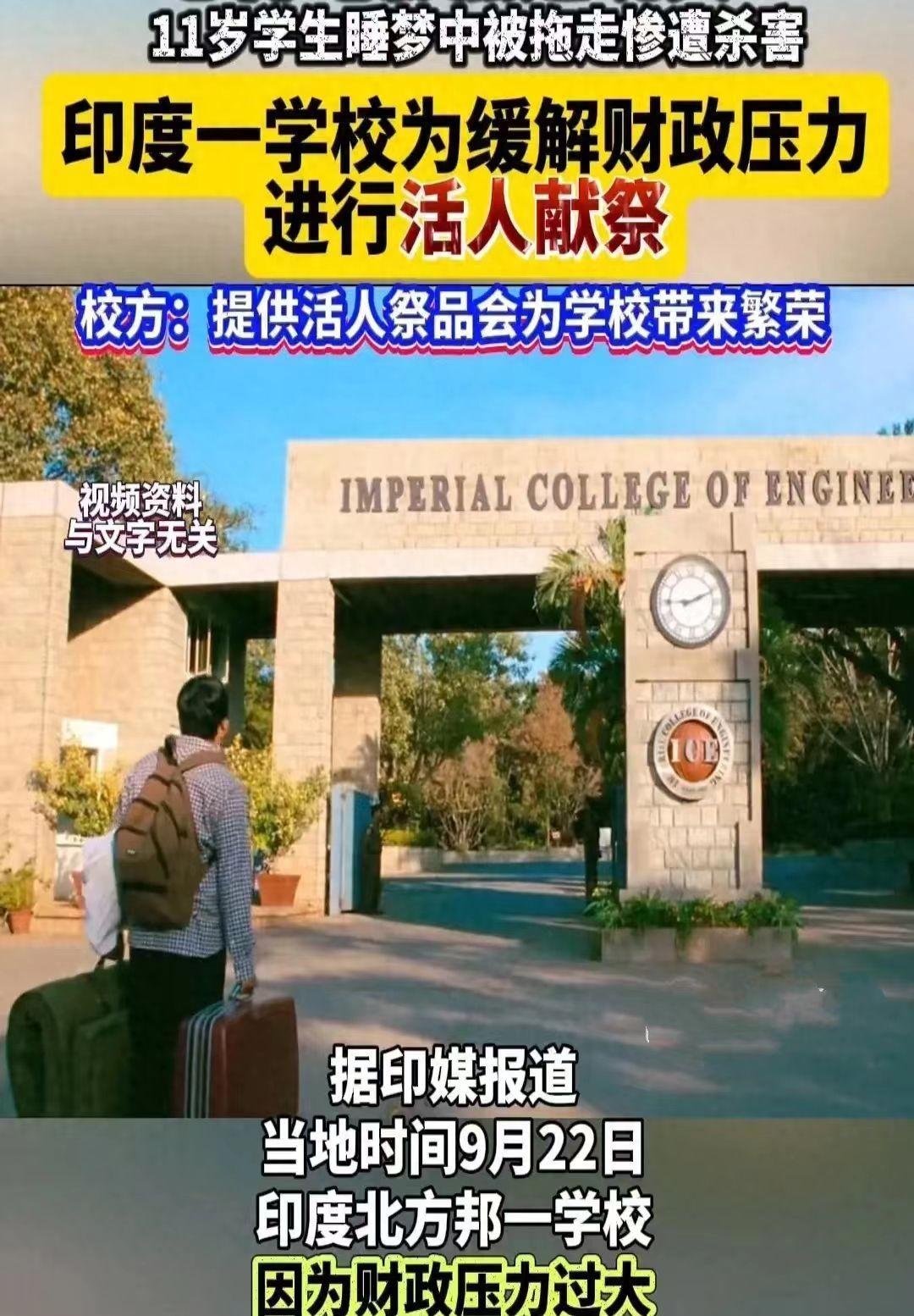 (素材來源: 新京報我們視頻 2024年09月29日印度一校長夥同老師綁架殺害11歲學生 稱獻祭能爲學校帶來成功 )