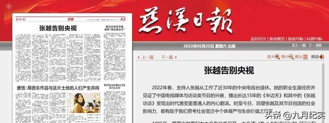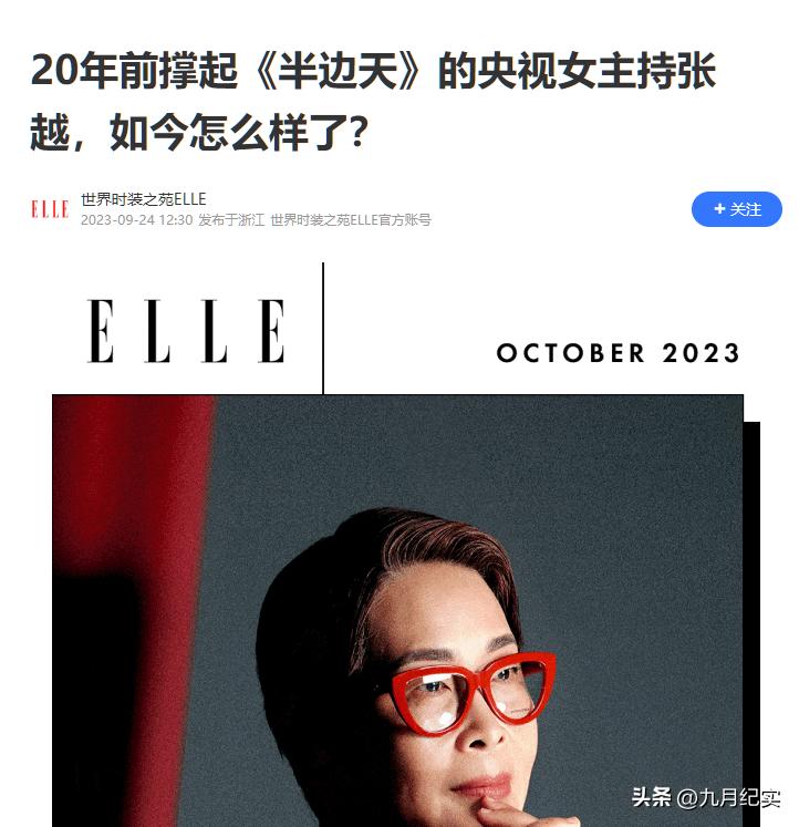 世界時裝之苑ELLE官方賬號2023-09-24報道:20年前撐起《半邊天》的央視女主持張越,如今怎麼樣了?