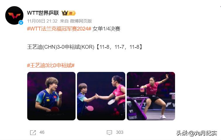 而王藝迪也在這場比賽中迎來韓國選手申裕斌,她在巴黎奧運會上拿到了混雙和女團的獎牌。