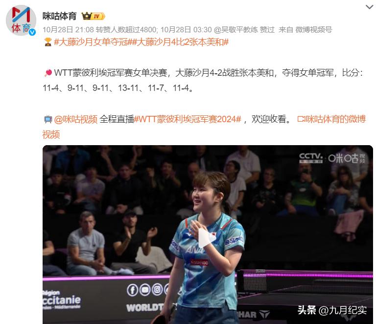 然而,在即將打響的四強比賽中,她將迎來日本選手張本美和。