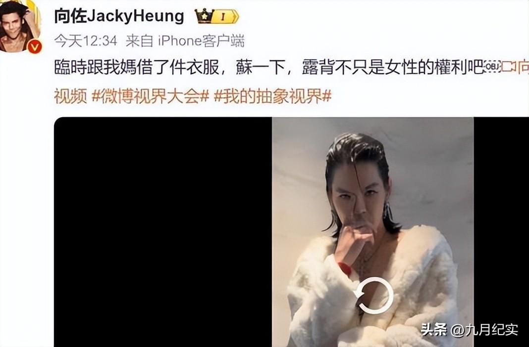 在走上紅毯前,向佐還在社交平臺上發文稱,臨時跟向太借了一件衣服穿,說一下,露背不是女性的專屬權利吧。