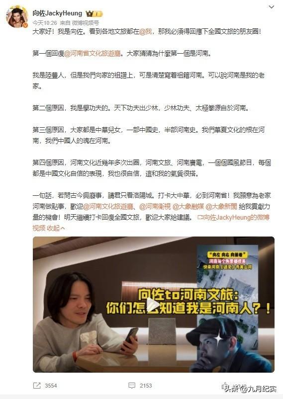 他坦言,自己在河南學習過功夫,如果能給河南文旅帶來一些影響,也是好事。