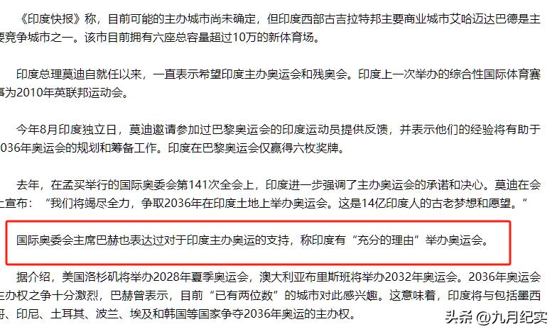 就在最近,相關報道稱印度正在積極申辦2036年奧運會,對於印度的這一想法,國際奧委會也表示支持。
