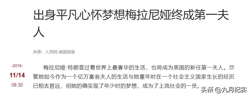 人民網2016-11-14報道:出身平凡心懷夢想梅拉尼婭終成第一夫人