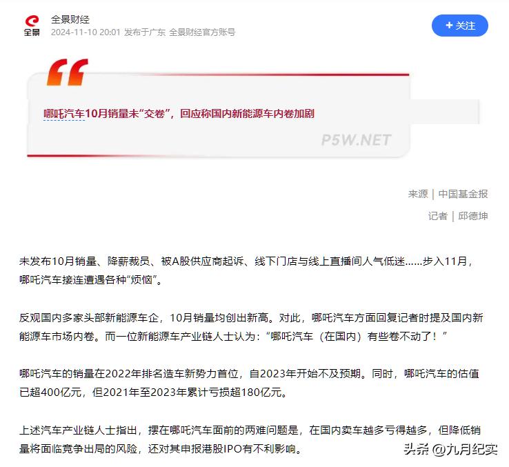 然而,幾家歡喜幾家愁,對於哪吒汽車來說,十月似乎就有些“難以啓齒”的味道了。