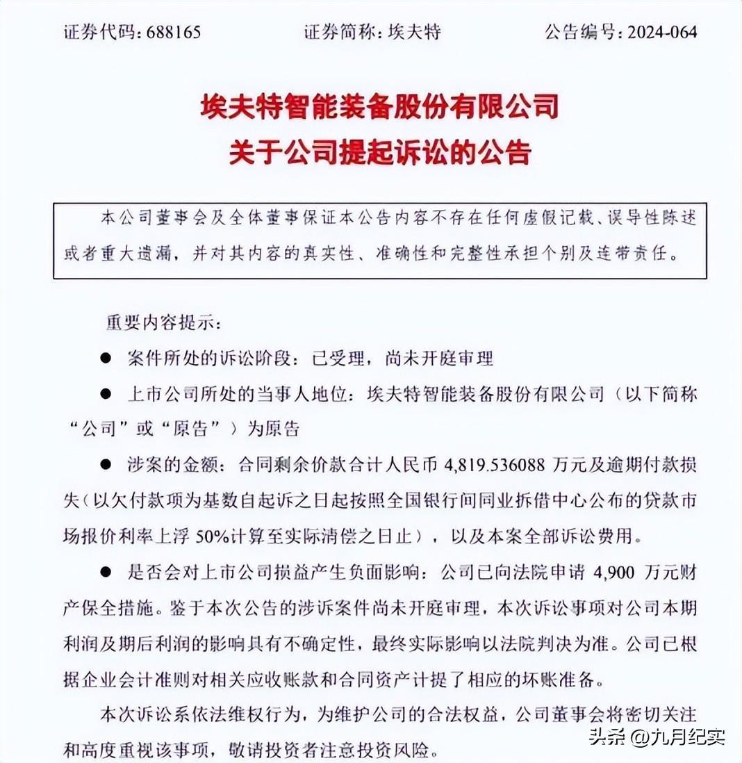 公告顯示,哪吒汽車欠其4800萬元合同款逾期未歸還,目前公司已經提起訴訟。