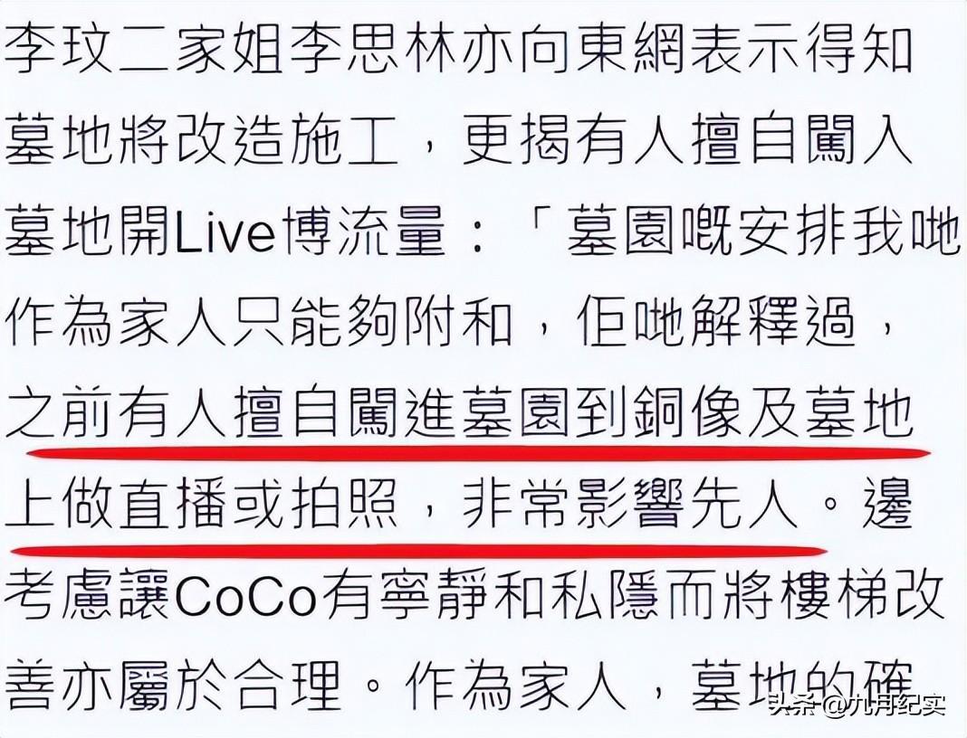 迫於無奈,他們纔會對李玟的墓地做出了一些整改,