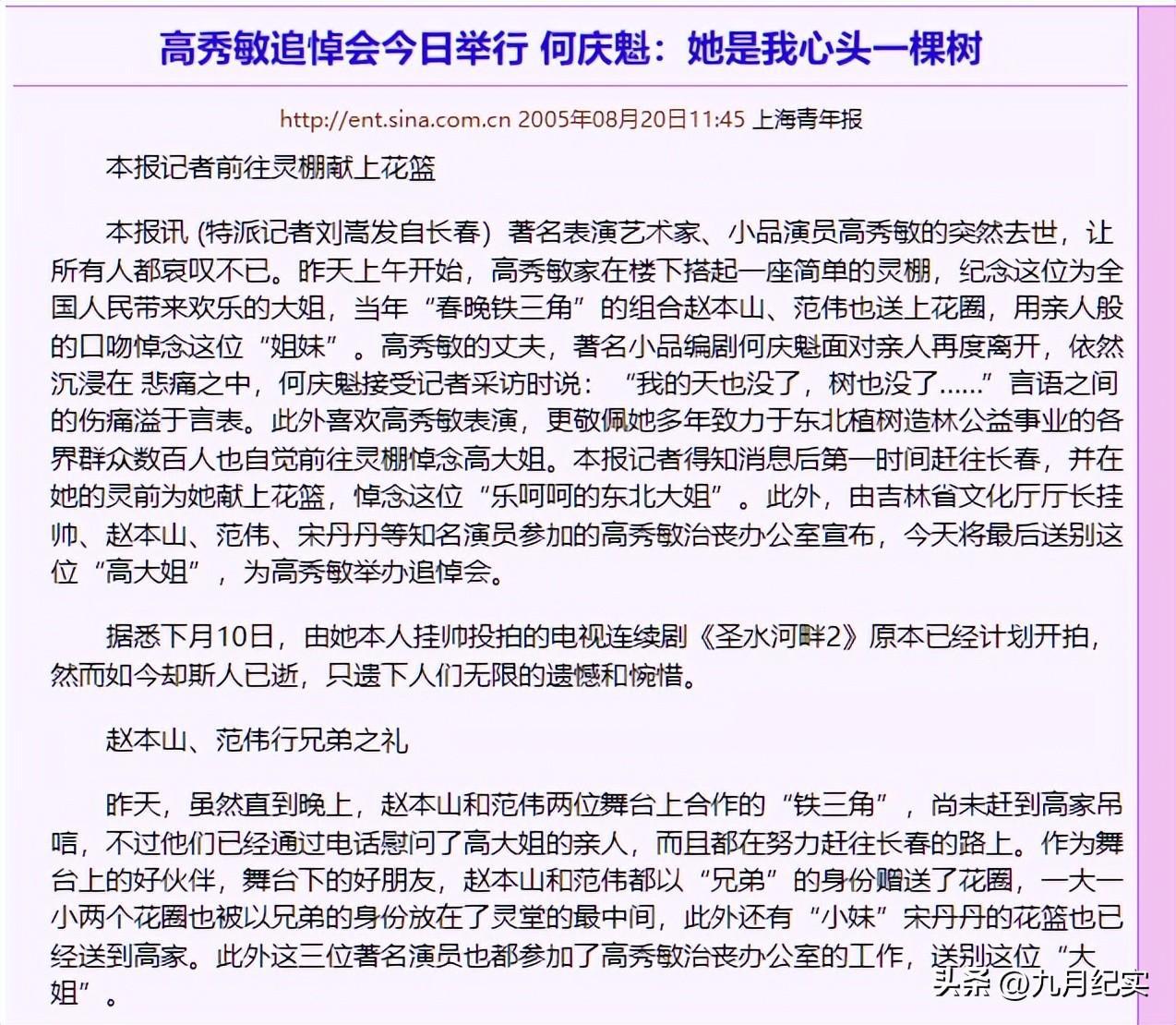 上海青年報2005-08-20報道:高秀敏追悼會今日舉行 何慶魁:她是我心頭一棵樹