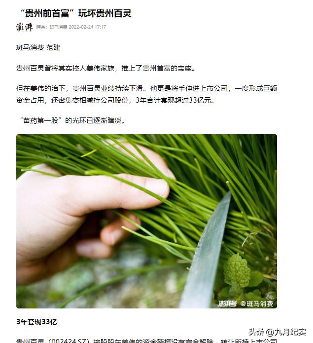 澎湃新聞2022-02-24報道:“貴州前首富”玩壞貴州百靈