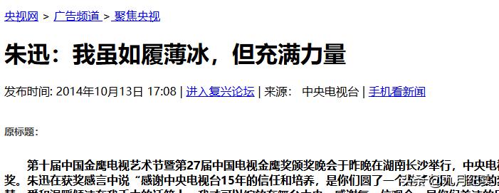 根據央視網的報道,這個事情刊登於2014年10月13日發佈的《朱迅:我雖如履薄冰,但充滿力量》