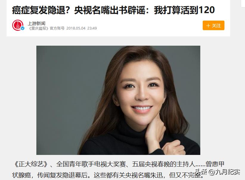 根據上游新聞的報道,這個事情刊登於2018年5月4日發佈的《癌症復發隱退?央視名嘴出書闢謠:我打算活到120》