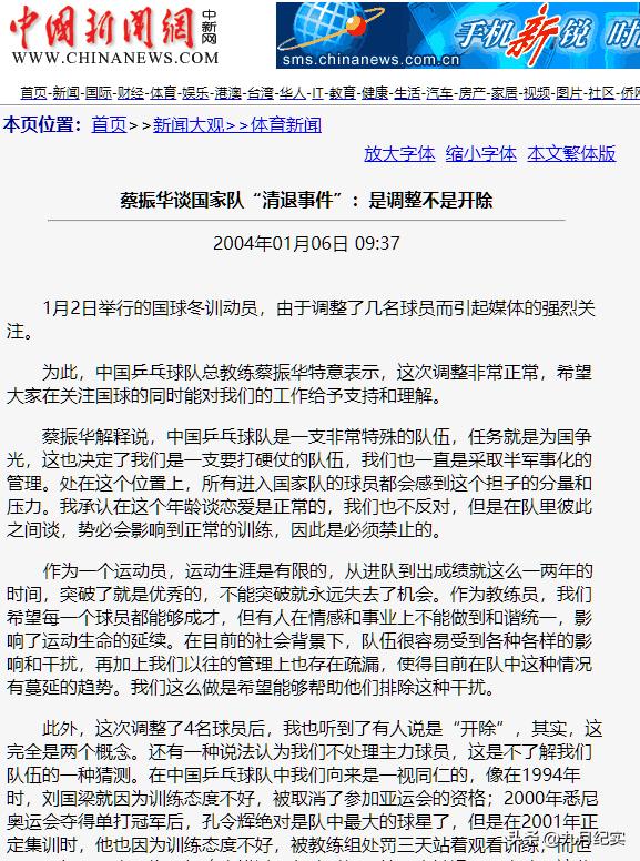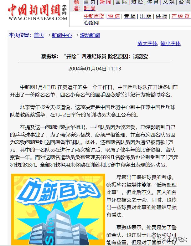 中國新聞網2004-01-04報道:蔡振華:“開除”四違紀球員 除名原因:談戀愛