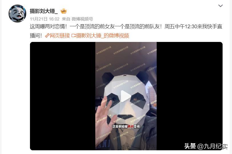 11月21日,網絡著名“狗仔”劉大錘在社交平臺上預告稱將會爆料兩個戀情瓜,一個是頂流的前女友,一個是頂流的前隊友。