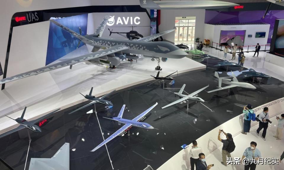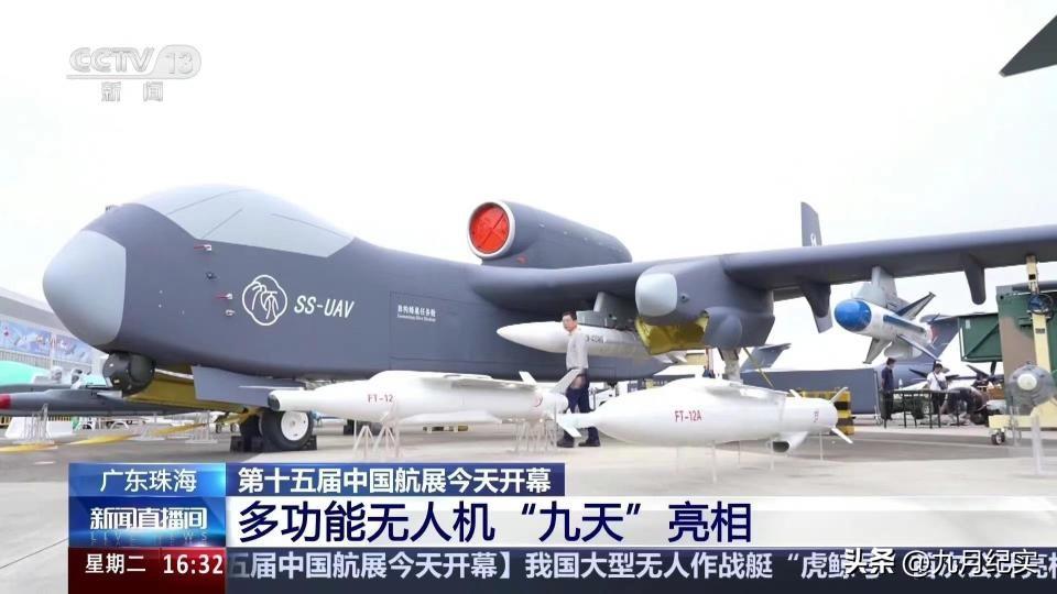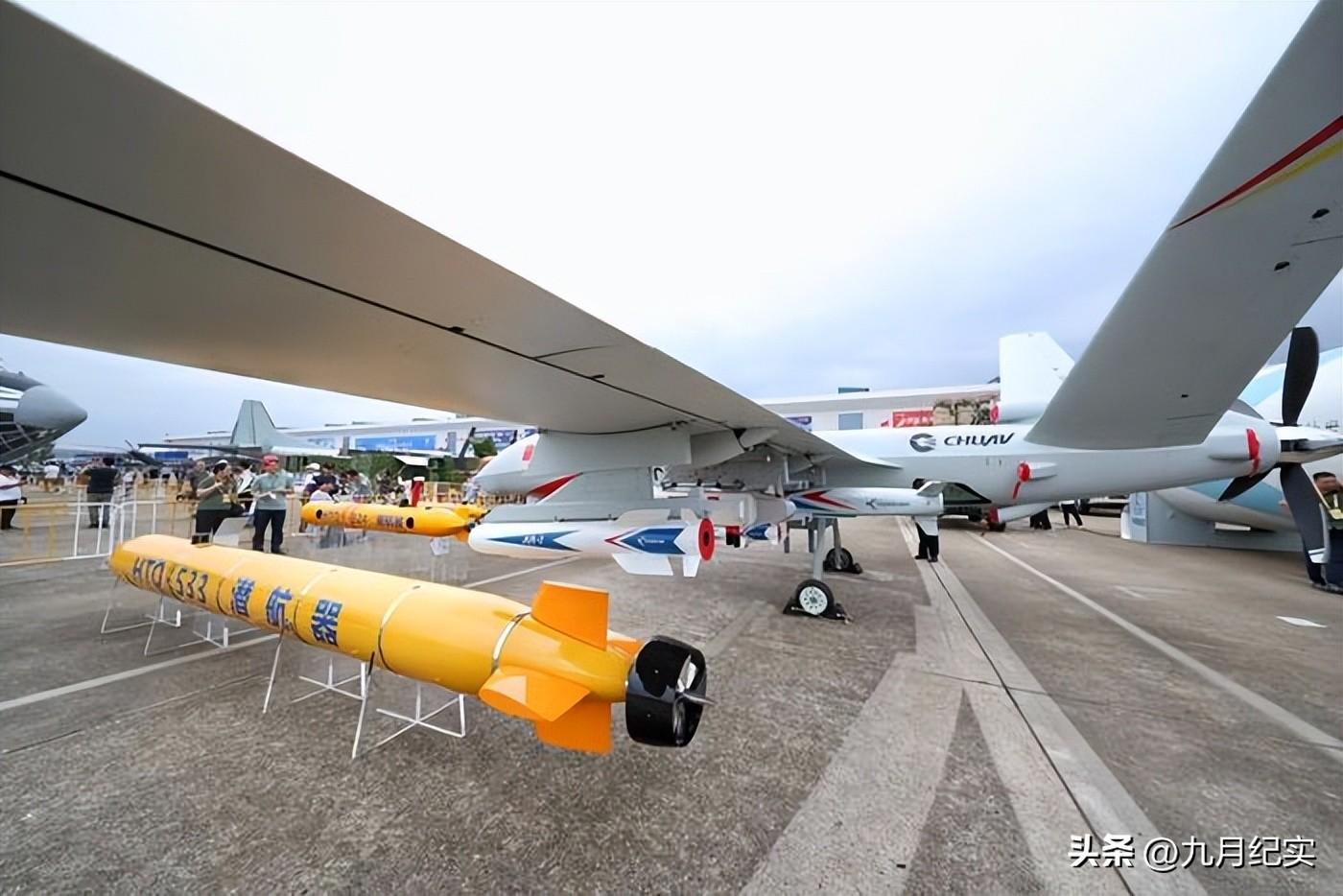 在航展上,彩虹-9察打一體無人機的亮相轟動程度並不低於蜂羣2號,它不僅具備超強的載荷能力,還可以射巡飛彈。