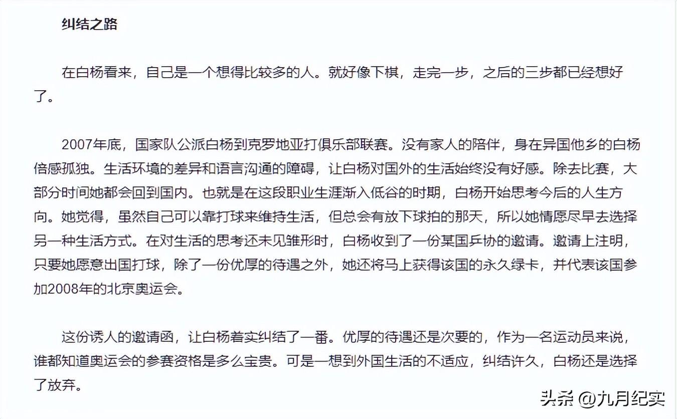 當時,他們承諾,只要白楊代表他們國家打球,就能讓她獲得綠卡,並且一定能參加2008年的北京奧運會。