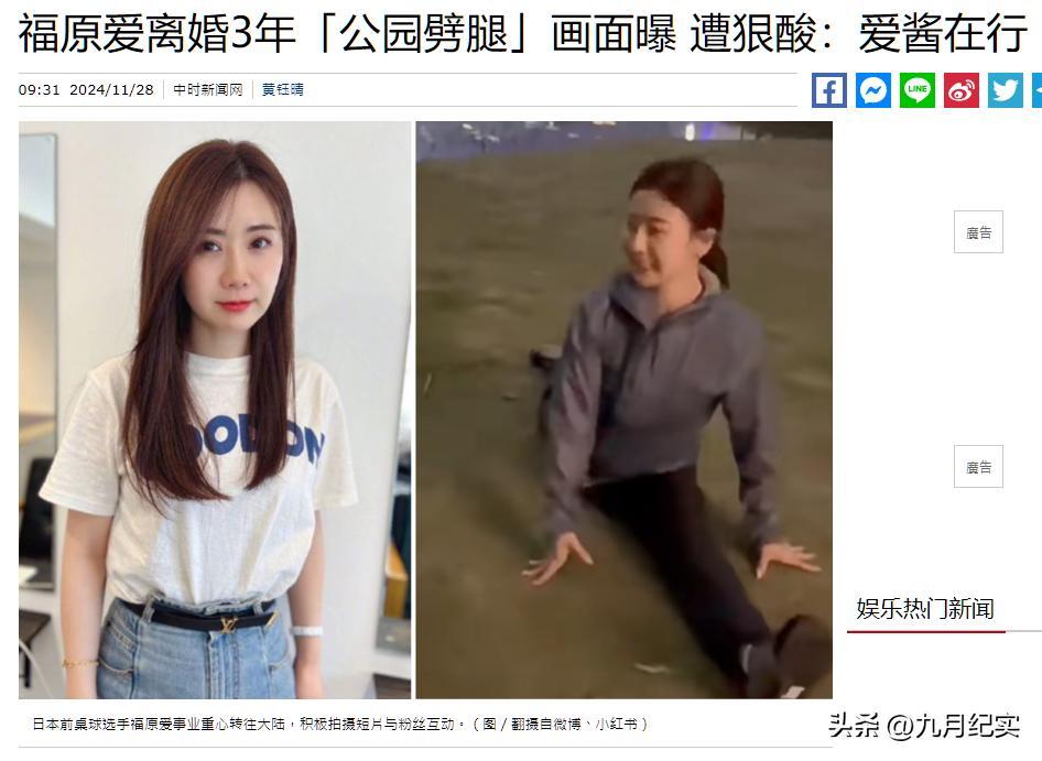中時新聞網2024-11-28報道:福原愛離婚3年「公園劈腿」畫面曝 遭狠酸:愛醬在行