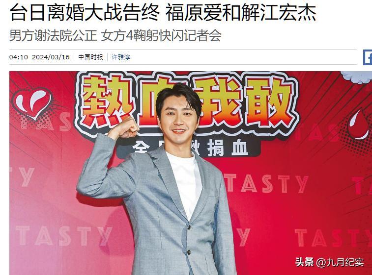 中國時報2024-03-16報道:臺日離婚大戰告終 福原愛和解江宏傑