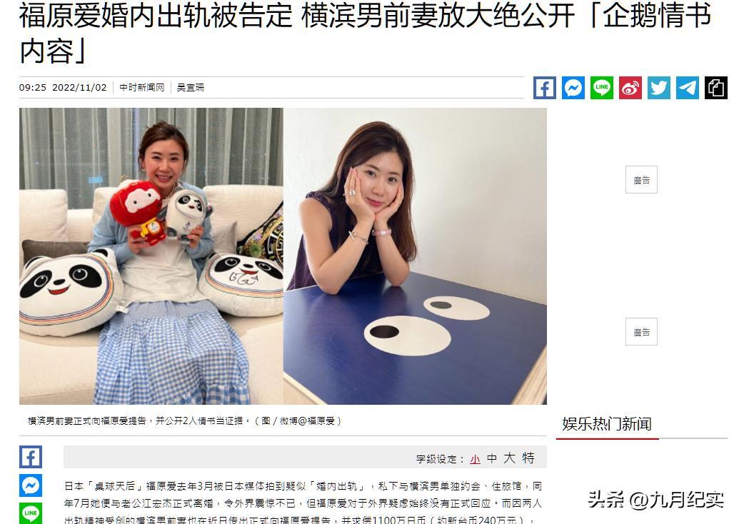 中時新聞網2022-11-02報道:福原愛婚內出軌被告定 橫濱男前妻放大絕公開「企鵝情書內容」
