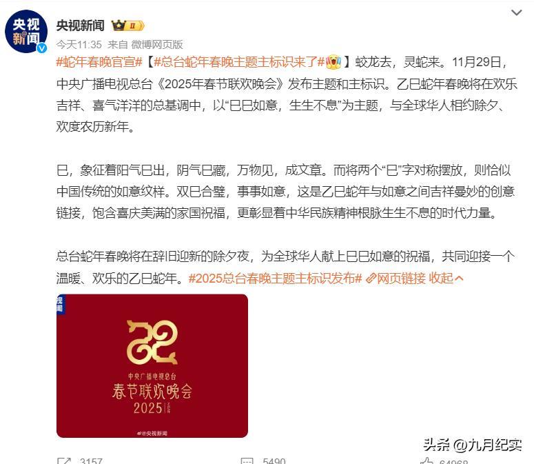 央視在11月底也終於官宣了蛇年春晚的主題,“巳巳如意,生生不息”,在美好的寓意中,迎來新的一年。