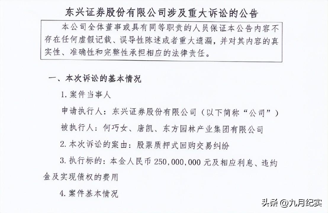 東方園林2020年7月7日公告,何巧女所持部分股份被強制平倉。