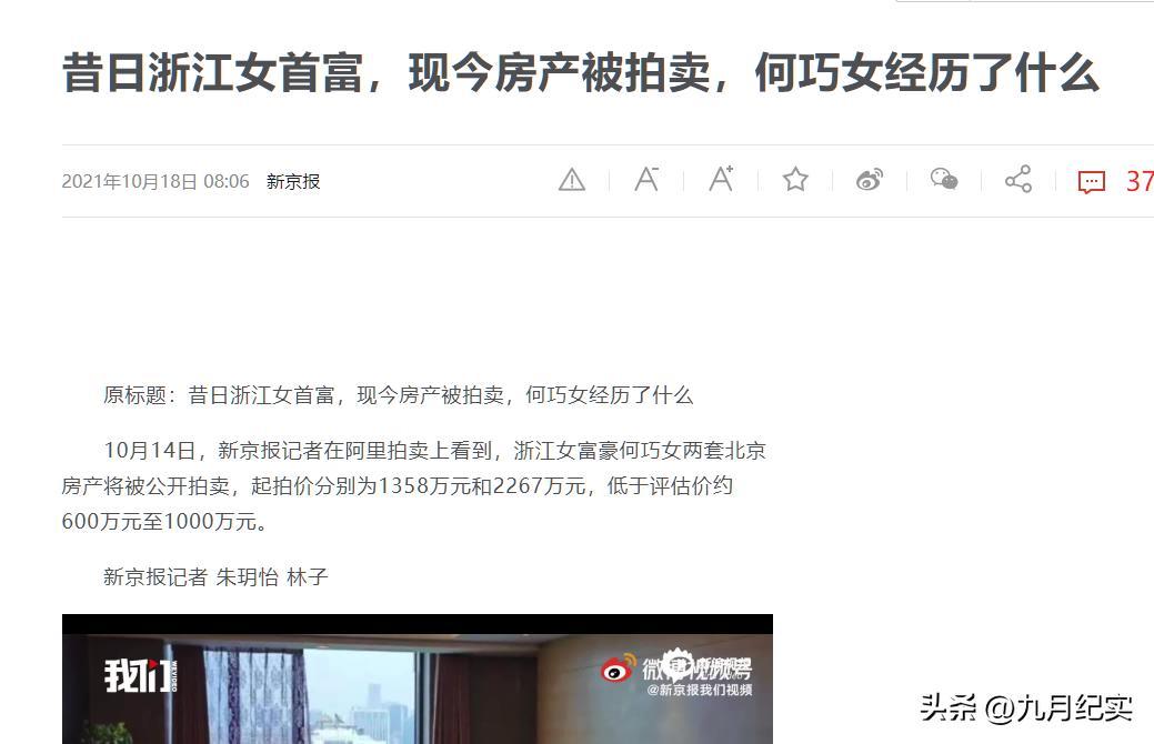 新京報2021年10月18日報道:昔日浙江女首富,現今房產被拍賣,何巧女經歷了什麼
