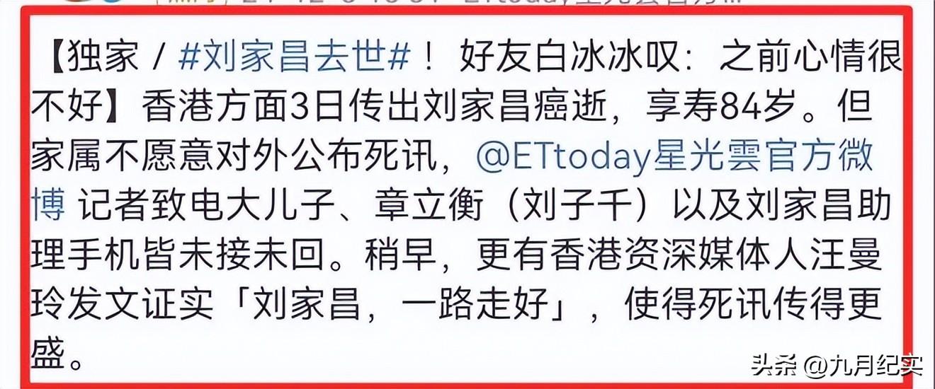 對於臺媒的這個消息,一開始很多人都表示不相信,很快就有相關媒體試圖聯繫劉家昌的大兒子,但對方並沒有給出回應。