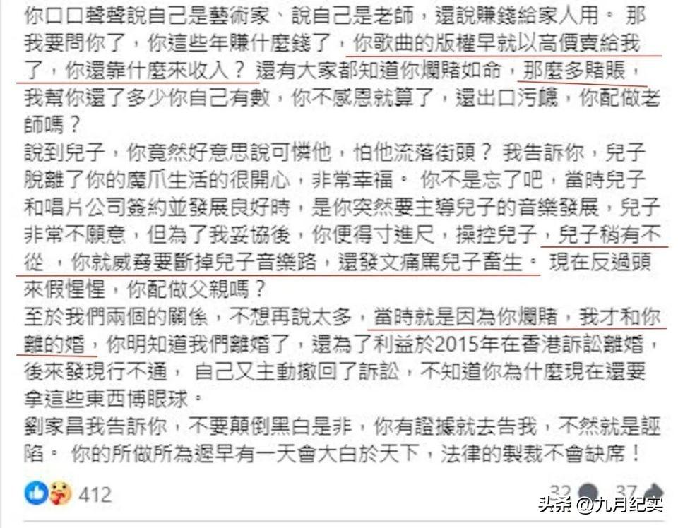 這段來之不易的感情也很快就宣佈結束,兩人兒子劉子千跟着母親生活。
