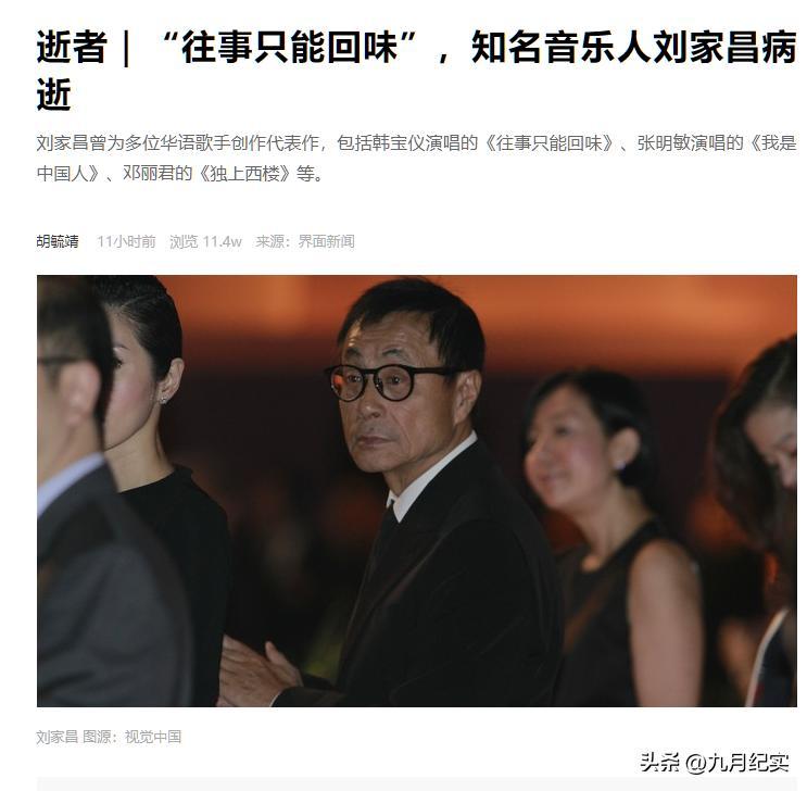 界面新聞2024-12-04報道:逝者|“往事只能回味”,知名音樂人劉家昌病逝