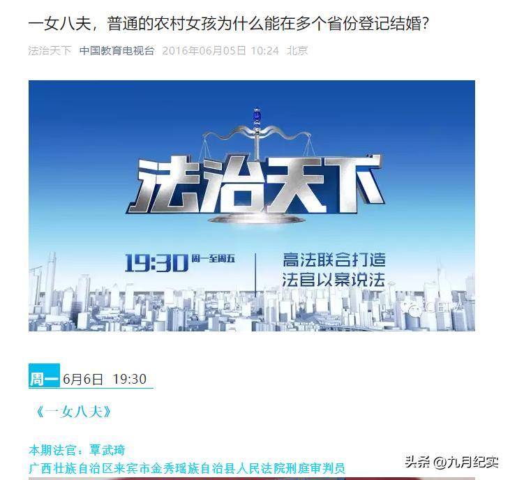 中國教育電視臺2016年06月05日報道:一女八夫,普通的農村女孩爲什麼能在多個省份登記結婚?