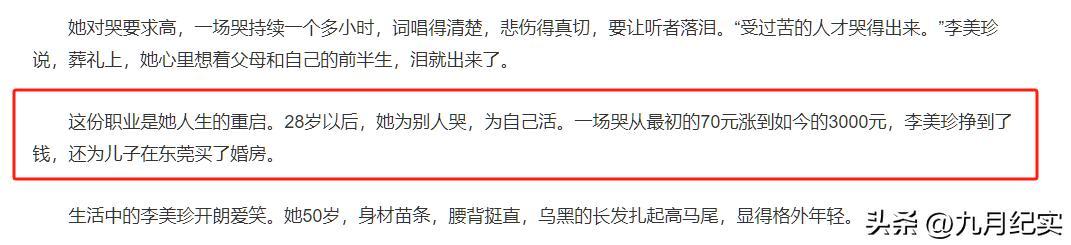 李美珍:專業哭靈24年,一場3000元一天三場,如今已給兒子買房
