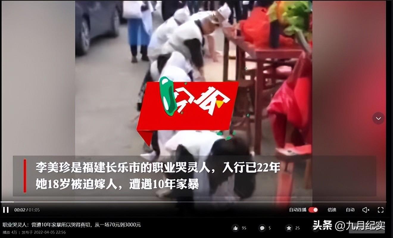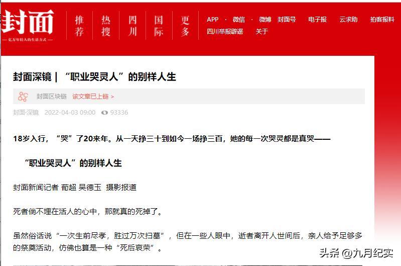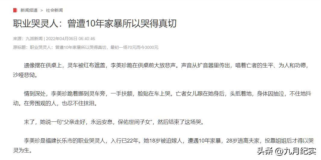 九派新聞2022-04-05 20:19報道:職業哭靈人:曾遭10年家暴所以哭得真切,最初一場70元而今3000元